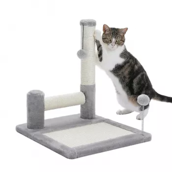 Cat Scratching Post with Sisal Pad & Spring Ball – Grey, Large