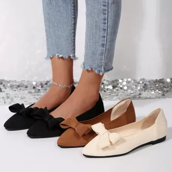 Bowknot Decor Elastic Knit Flats for Women – Casual Slip On Comfort Loafers