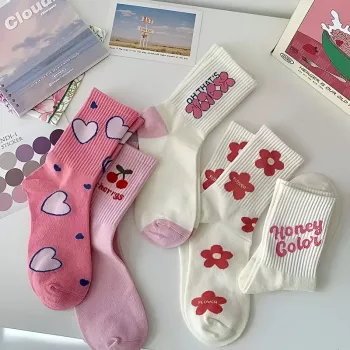 2-5 Pairs Floral Print Mid Tube Socks – Comfy, Cute, Women’s Stockings & Hosiery